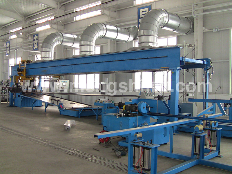 一、該設(shè)備由一條二工位或者4工位微機(jī)控制纏繞機(jī)組、鋼制管模具蒸汽內(nèi)加熱及水冷脫模自控系統(tǒng)、以及輔助設(shè)備等組成??缮a(chǎn)管徑為2"~28"(DN50~DN700),單根管長9.15或12m。生產(chǎn)線設(shè)計年產(chǎn)量180 km(以2"管、工作壓力7MPa,每天16小時工作,每年按300天計算)。